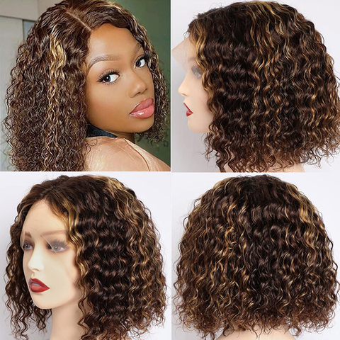Gluna Water Wave Short Hair 4/27 Highlight Color Lace Frontal/Closure Bob Wig Unprocessed Healthy Virgin Human Hair